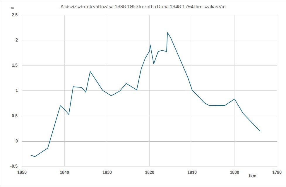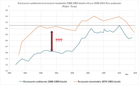 Dunaremete alatt azonban semmi nem változott, a kisvízszintek csökkentek, tehát a meder levezetőképessége nem romlott.