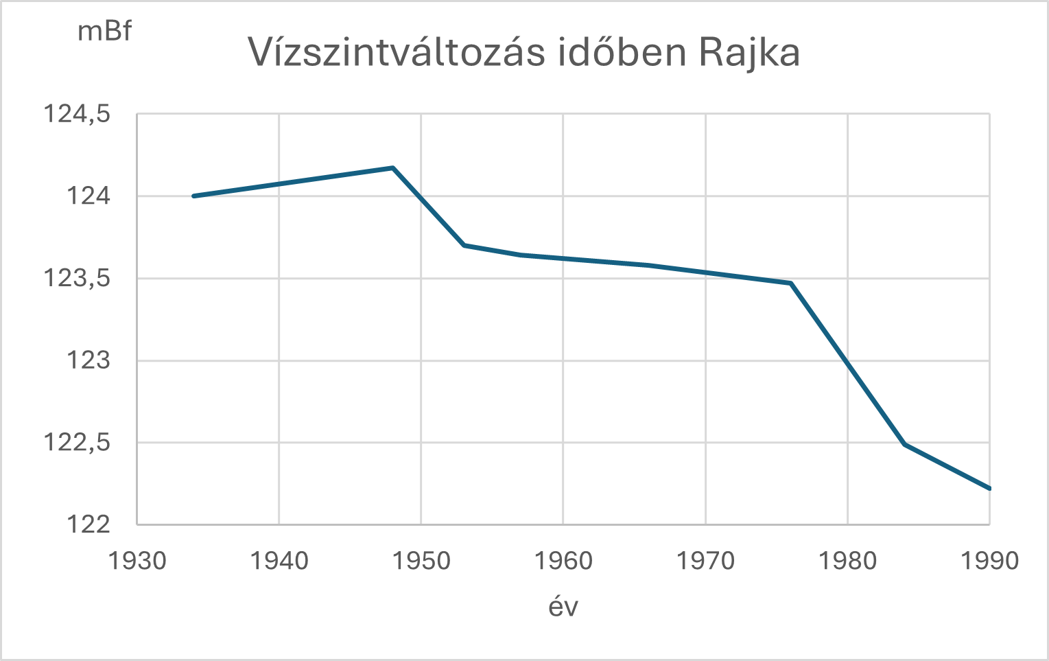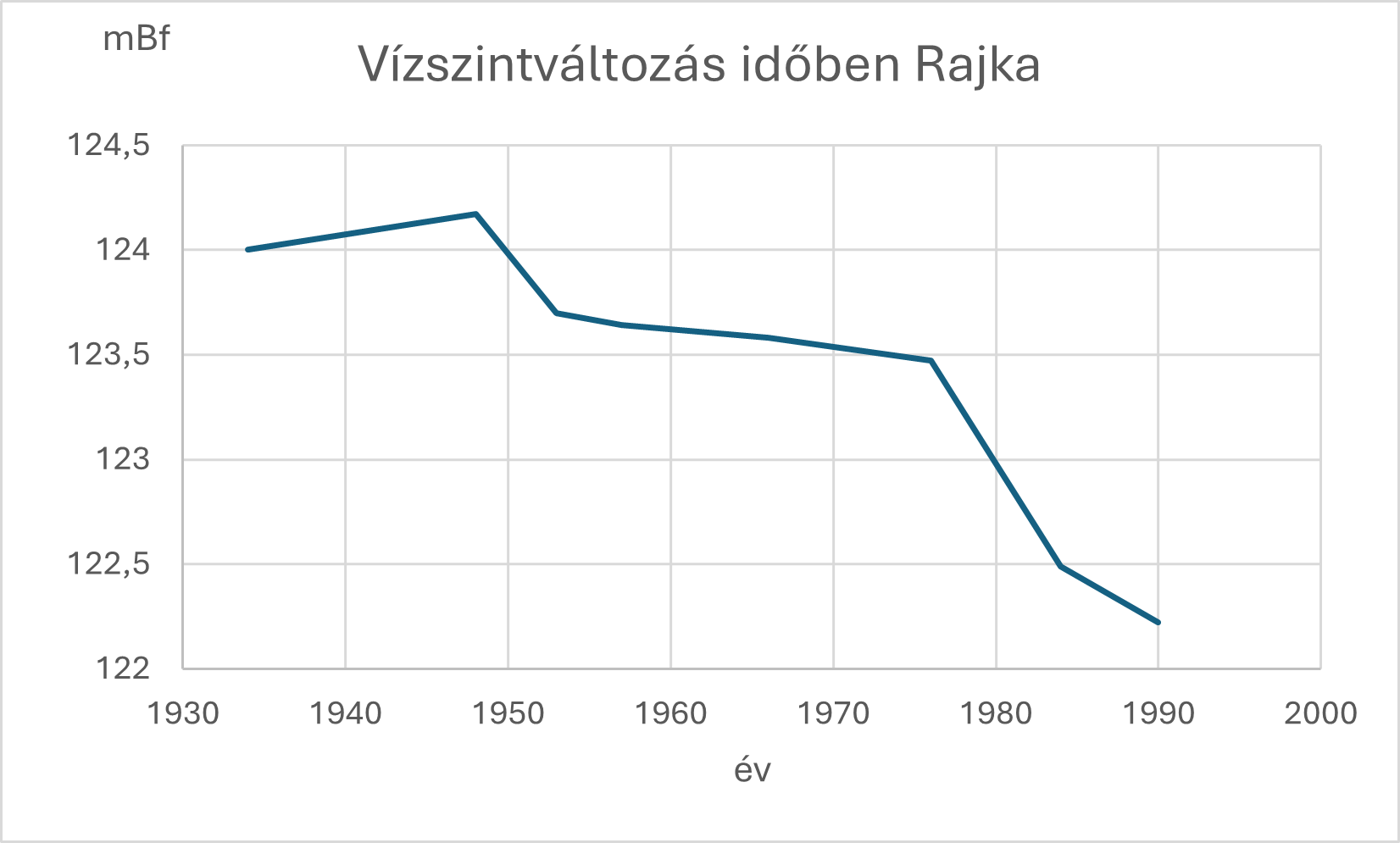 A kisvízszintcsökkenés 1953-1990 között Rajkán volt a legjelentősebb, 1,95 m, de Körtvélyesen is még jelentős volt, 1953-1990 között 1,46 m. Dunaremete ebben az időszakban érdemben nem változott, Ásványrárón viszont 70 cm-es csökkenés következett be.