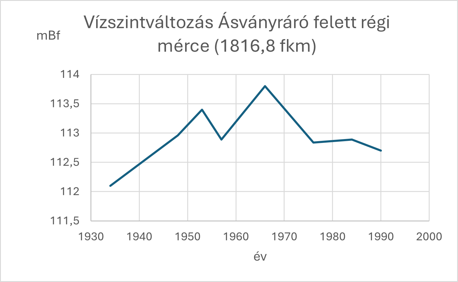 Ásványráró térségében az árvízszintek szintén meghaladták az 1954-es szintet és csak az 1815 fkm szelvényben alakultak ismét alatta, de itt tudtuk, hogy az alvízcsatorna kotrása miatt jelentős és tiszta mederfelület állt a víz rendelkezésére.