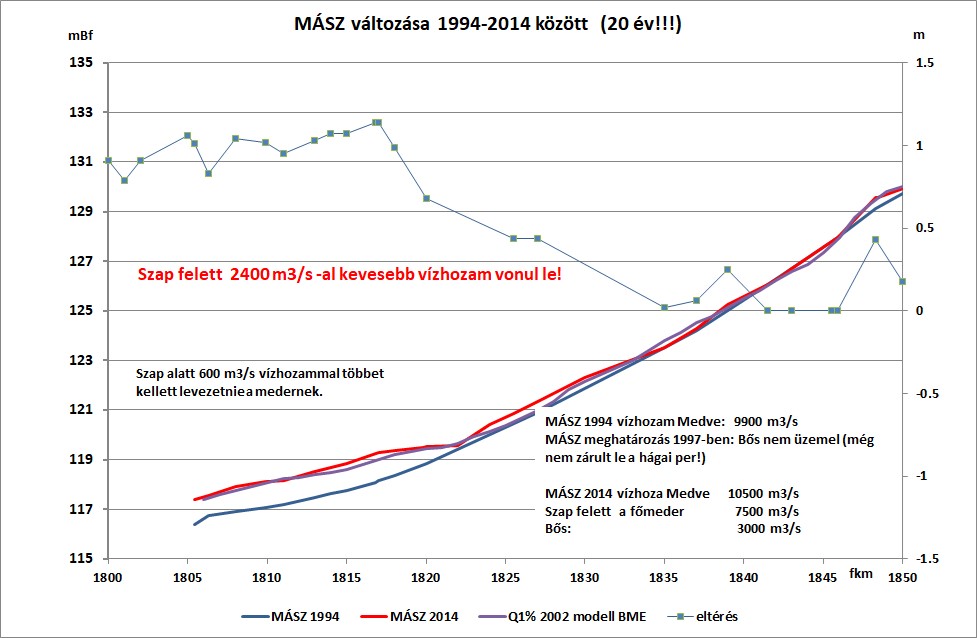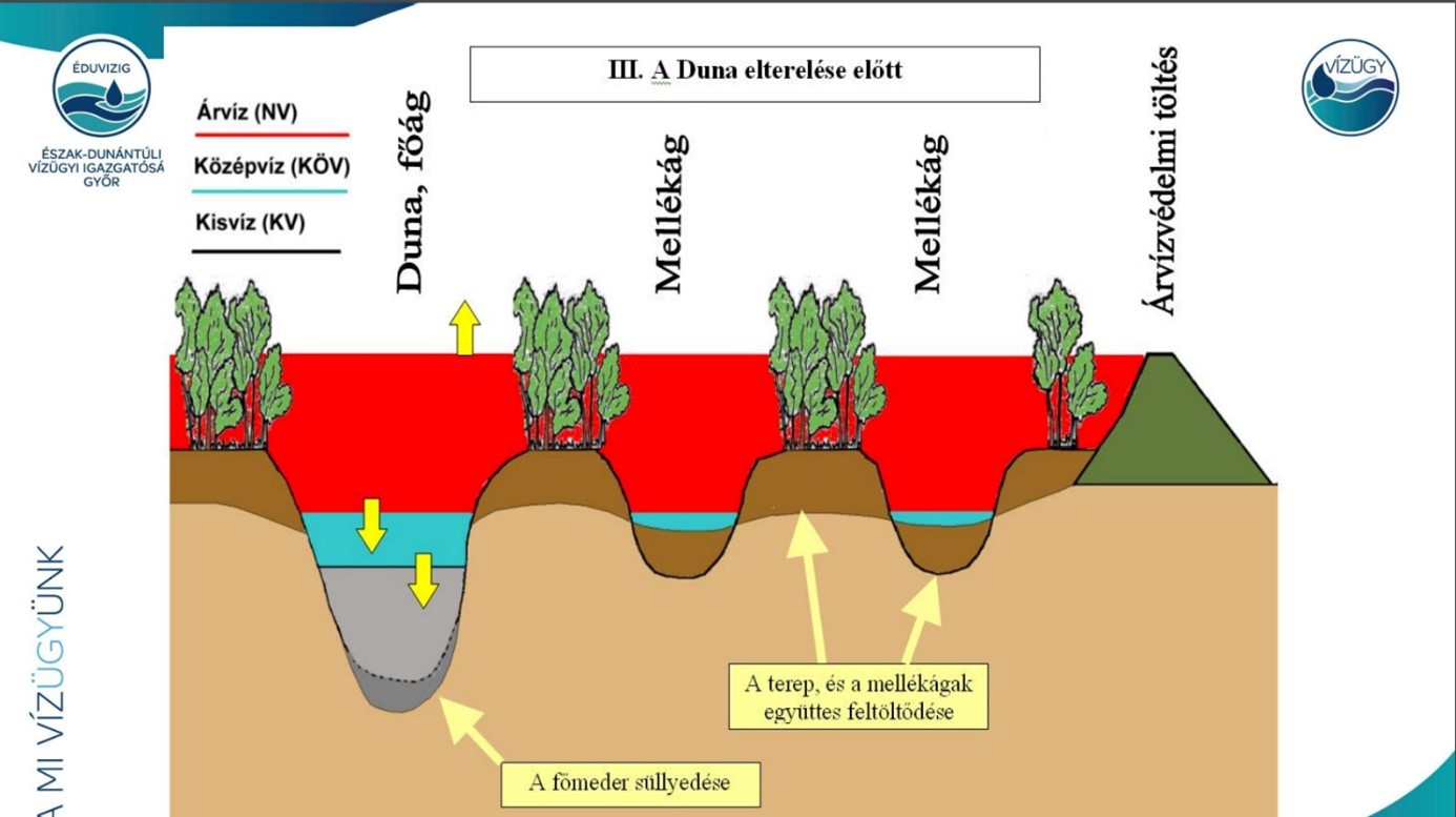 A nagyvízi meder két részből áll, a magából a mederből és a hullámtérből. 1991-ben még nem terelték el a Dunát, a meder állapota rendben volt, tehát a hullámtéren kellett keresni az okokat.